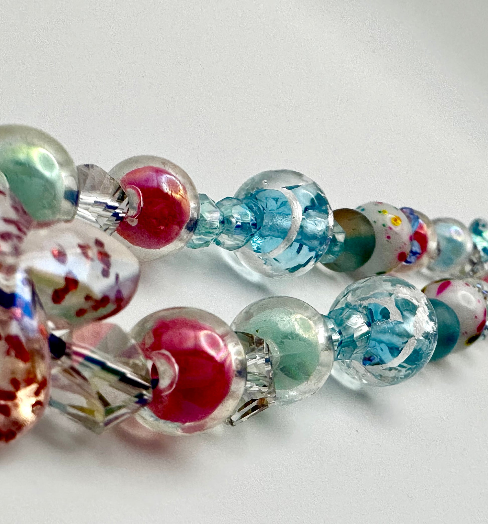 - Artful Bead Mix – Includes painted floral beads, faceted crystals, and glossy glass beads.